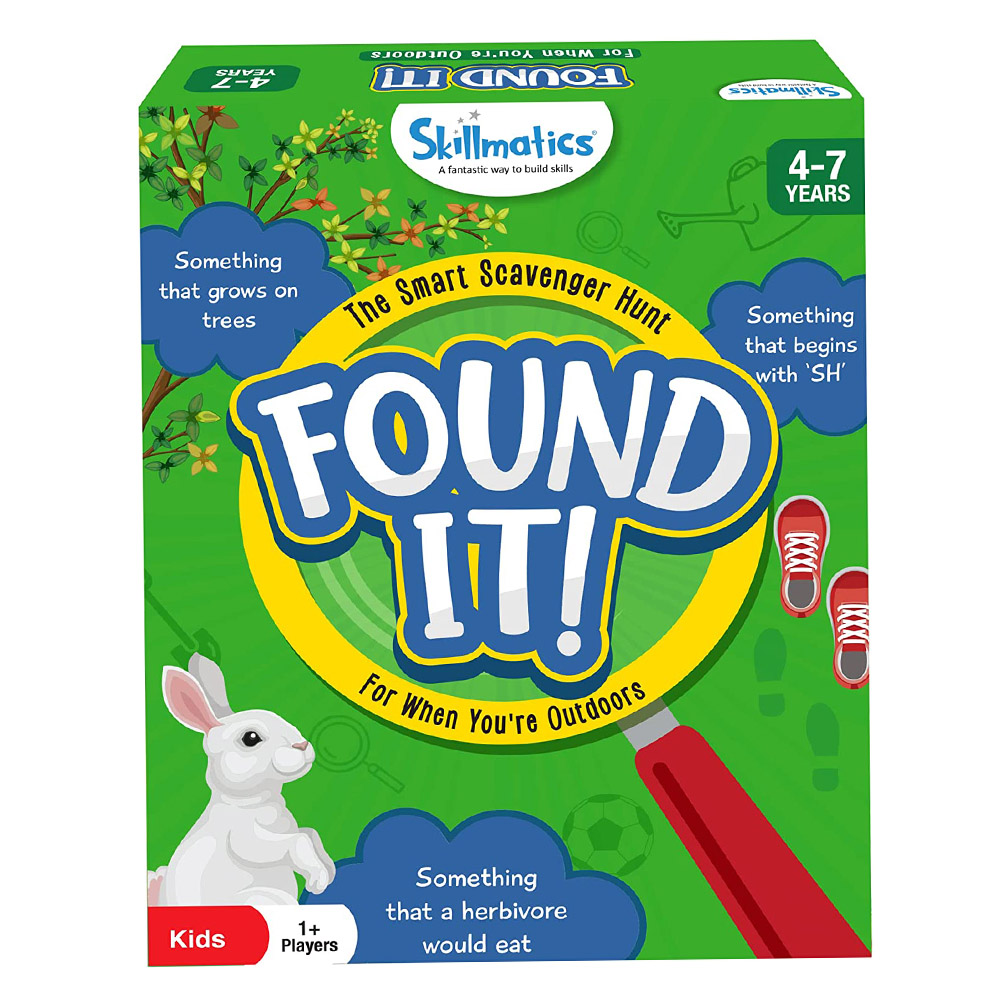 - OUTDOOR SCAVENGER HUNT – Found it! is an exciting outdoor game that helps children learn as they go on the most exciting ‘Search & Find’ with prompts like Can you find…”Something that is heavier than a leaf? Something round?” etc.! Players must shout “FOUND IT!” as soon as they get their hands on the object! The first one to win 7 cards wins the game!